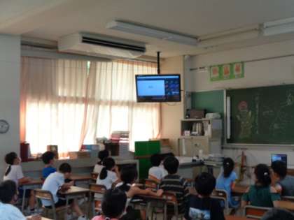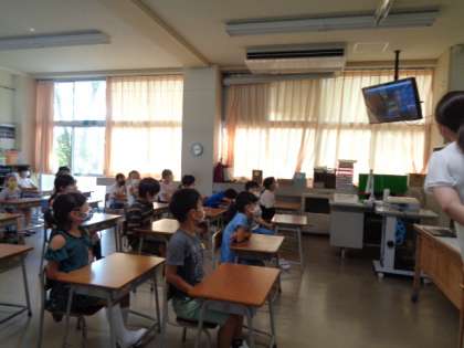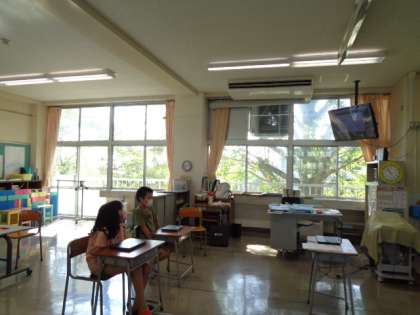 今日の始業式は、Meetを使って行いました。どの学年も元気いっぱいに、校長先生からの呼びかけに応えていました。