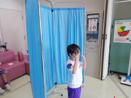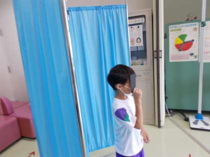 黒い画用紙で片目ずつ隠して検査をしました。「右。」「左。」…上手にできました。