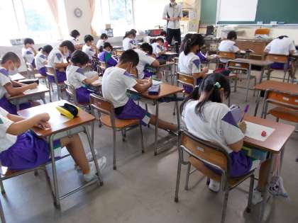 朝の会が終わり、読書や漢字の確認テストなどに落ち着いて取り組む子供たち。気持ちよく一週間のスタートを切ることができたようです。