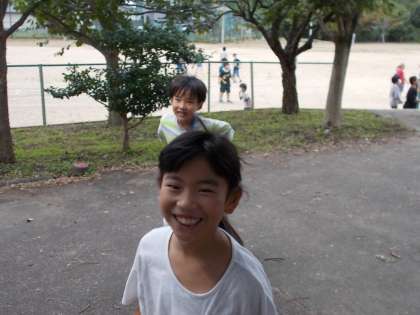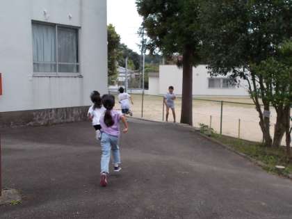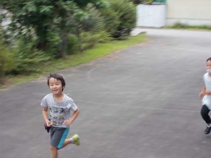 さわやかな秋空の下、元気いっぱいに走り回る子供たち。