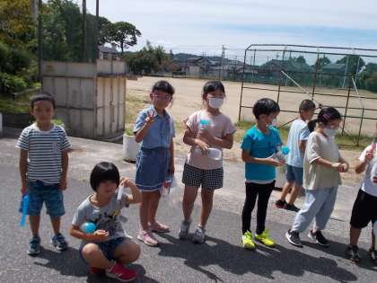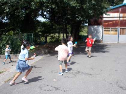 水遊びスタート!水鉄砲やペットボトルを使って、思い切り遊びました。