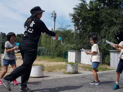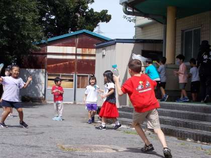 思い切りがよい1年生の子供たち。服が濡れることもお構いなしで盛り上がりました。
