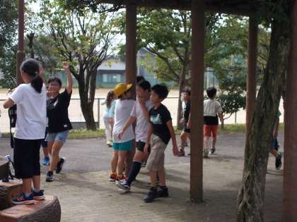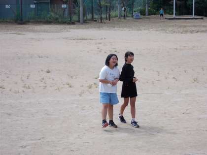 4年生は、学級のみんなで鬼ごっこをしていました。「みんなで遊ぶと楽しいです!」だそうです。