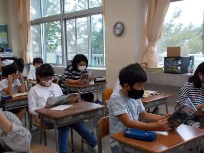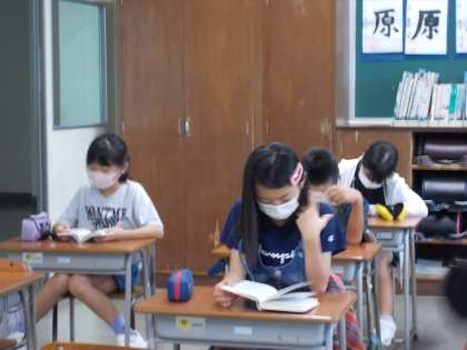 朝の会が終わり、静かに本を読み始める子供たち。一日の始まりにふさわしく、心が落ち着く時間です。
