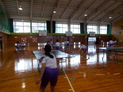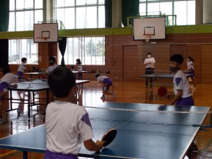 卓球クラブの様子です。学年関係なく、誰とでもラリーを楽しんでいます。
