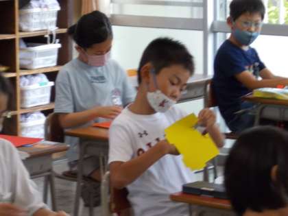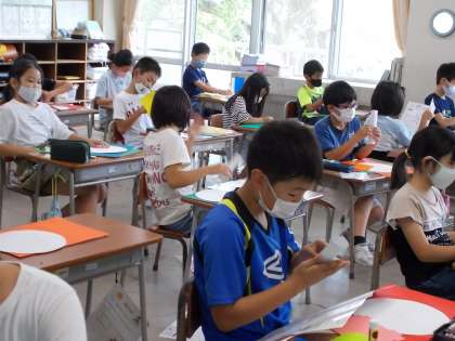 「くるくるランド」の学習をしています。丸い紙を使うようですが…。どのような作品に仕上がるのか、とても楽しみです。