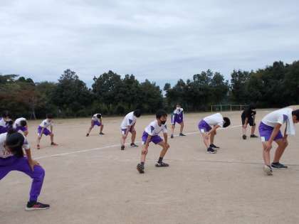 体操は念入りに。担任の話を聞く表情も真剣です。子供たちの気迫が感じられました。