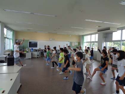 講師の先生に来て頂き、学習発表会で披露するダンスの練習をしました。リズムにのって楽しく体を動かしました。とても楽しく、いろいろな踊り方ができるようになった充実した時間でした。