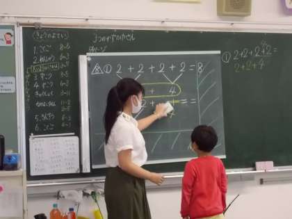 「2+2+2+2」をどうやって計算したらよいか、考えを出し合いました。