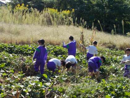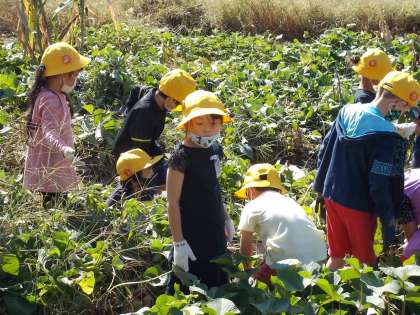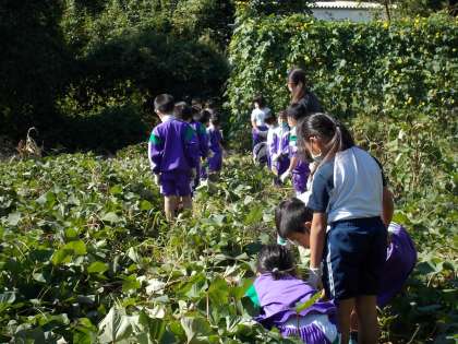 明日は長寿会の皆さんと芋掘りをします。つる返しをして、明日に備えました。