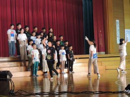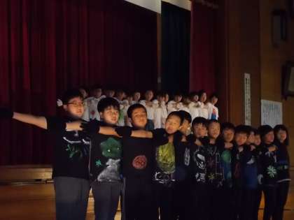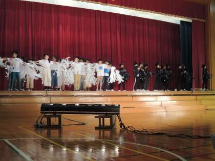 心の葛藤と、仲間の大切さに気付いていく姿をオリジナルのTシャツと表現運動で表しました。子供たちの一生懸命な姿から6年生に向かう意気込みを感じます。