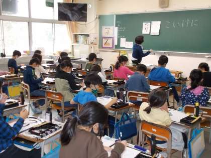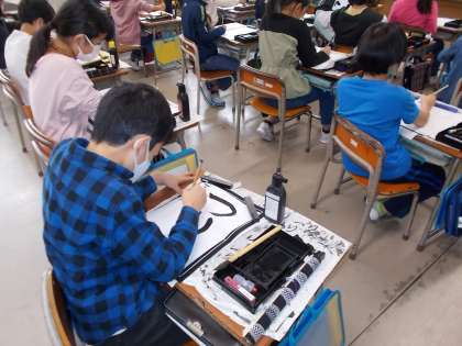 初めての平仮名、二文字に挑戦。「つり」と揮毫しました。