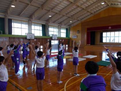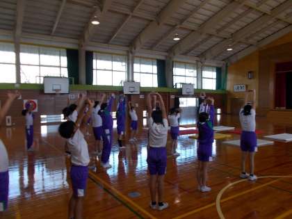 マット運動の後の整理運動も教えていただきました。これからも、安全に気を付けながら技能を磨いていけるとよいですね。