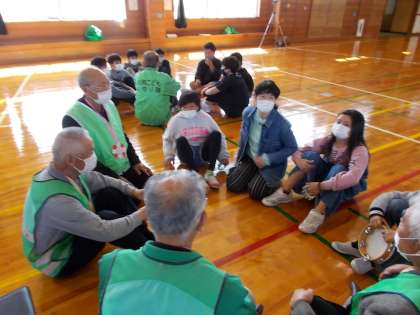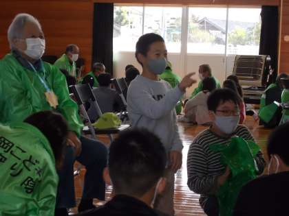 5年生は、ゲームを担当。「猛獣狩り」のオリジナルバージョンで、感謝の言葉を伝えました。