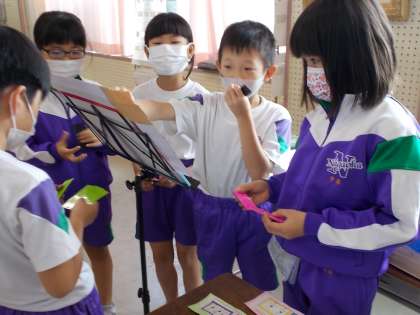 一人一人がつくったリズムをつないで、グループのリズムをつくりました。リズムをつなぐ順番を入れ替えたり、重ねる人数を変えたり、試しては話し合い、試しては話し合い…何度もくり返す中で、自分たちの好きなリズムやイメージに合ったリズムを見付けることができました。