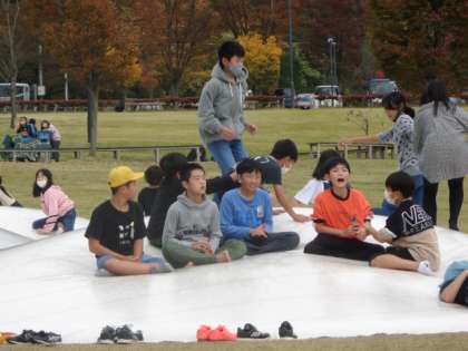 食事の後は、呉羽丘陵多目的広場で、仲間とまさに「力いっぱい」遊びました。
