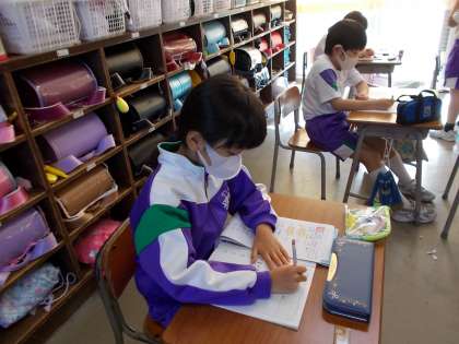 2の段の掛け算を学習しました。ドリルが終わった子供から、計算カードを使って自主学習。繰り返し取り組むことで定着を図っています。
