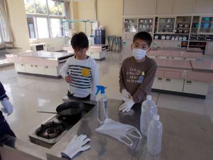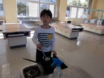 何かおいしいものを作っているのかと思いきや…理科の実験中でした。水の蒸発や、体積の変化について学習しました。