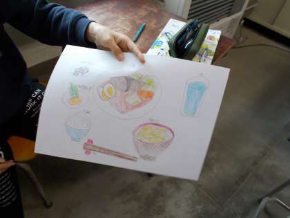 彩りや栄養バランス、食べやすさ等を考えながら、理想の朝食を絵にしていました。後日行う調理実習が楽しみですね。