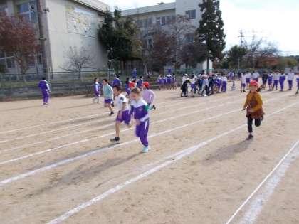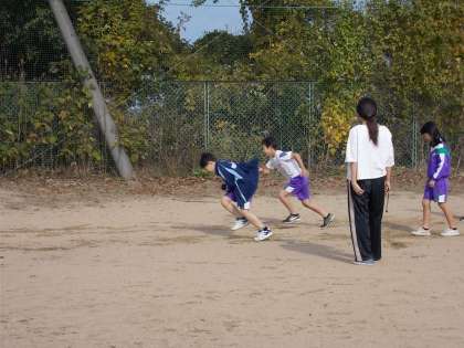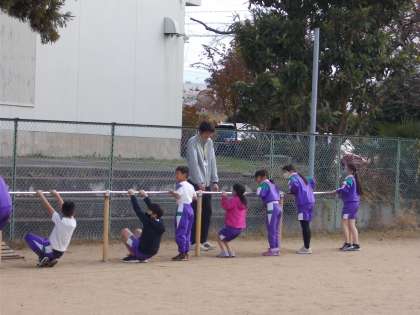 投力や走力、巧緻性や握力等、バランスよく体力を高めることを目指して考えられたメニュー。どれも子供たちは楽しみながら取り組んでいます。