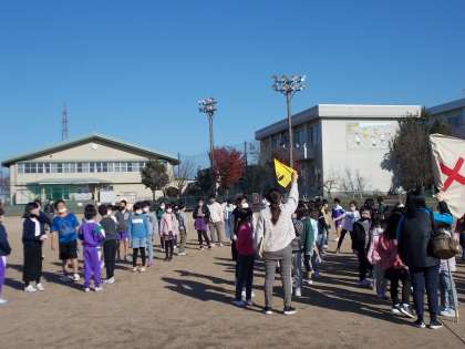 清掃中に給食室から出火したという想定で避難訓練を行いました。