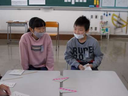 家の人を招いた「ハッピーにこにこ集会」。自分たちで考えた遊びをみんなで楽しむことができて、2人とも、にこにこ笑顔になりました。家の人に喜んでもらえてよかったですね。