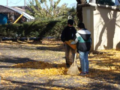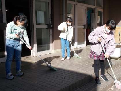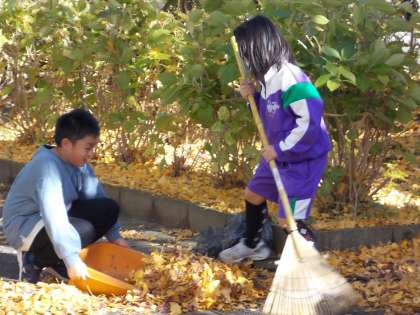 さわやかなお天気。掃除をしていてる子供たちも気持ちがよさそうです。