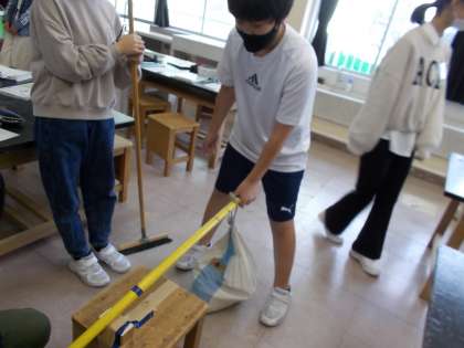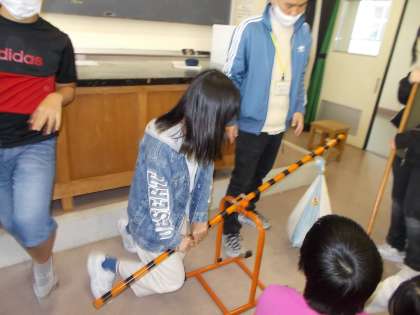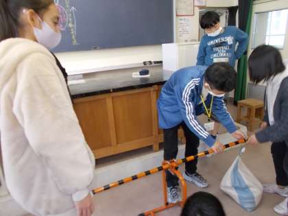 「てこ」について学習しています。力を加える場所を変えながら、手応えの違いを体感しました。