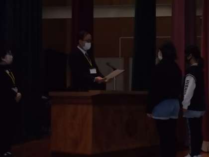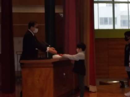 新年小学生作品コンクールやバレーボールの交流大会・チャレンジリーグで頑張った子供たちの授賞式がありました。