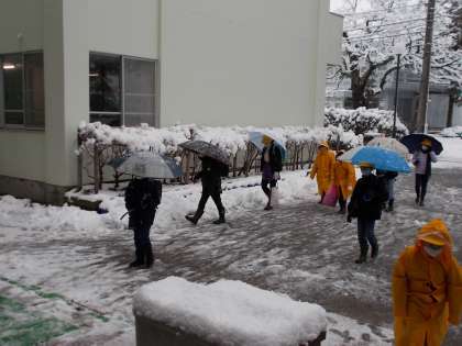 6年生が児童玄関前や前庭の除雪をしてくれました。ありがとう!