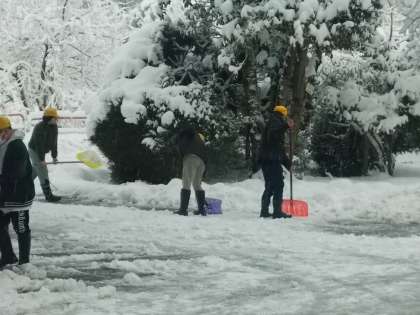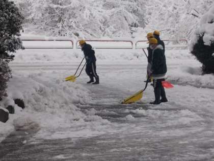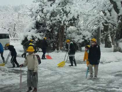 今朝も高学年の子供たちが除雪をしてくれました。意気に感じて働く子供たち。とても素晴らしいですね。
