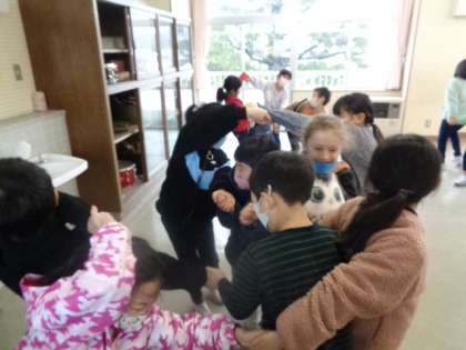 班のみんなと「なべなべそこぬけ」の動きを楽しみ、わらべうたのおもしろさを味わいました。