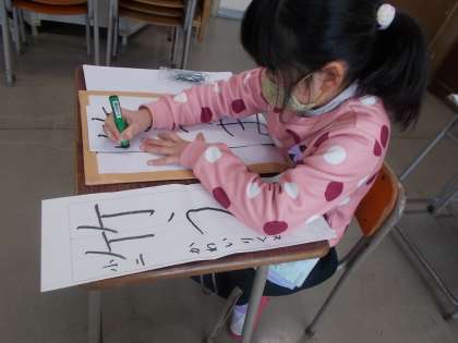校内書初大会の審査の結果、各学年1名ずつ、県の書初大会に出場する代表者が決まりました。