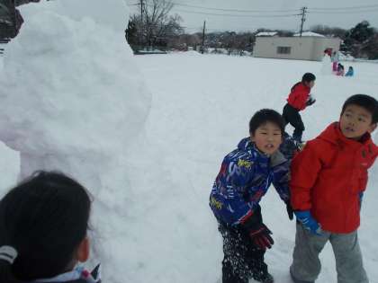 色団ごとに分かれて、雪だるまの大きさを競い合いました。さて、結果はどうなったのでしょうか?