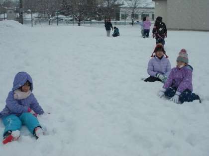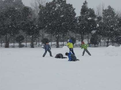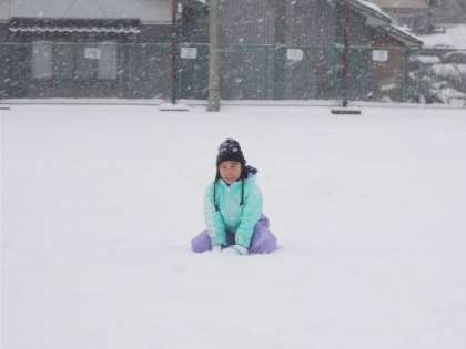 朝から雪遊びをする3年生の子供たち。元気いっぱいです!