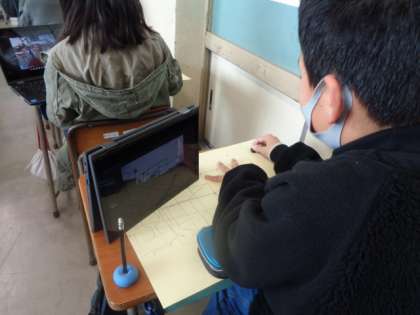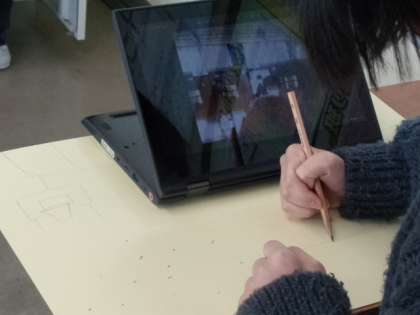 それぞれの「大切な風景」が、画用紙に表れてきました。線で描きながら、思い出もなぞっているかのようです。