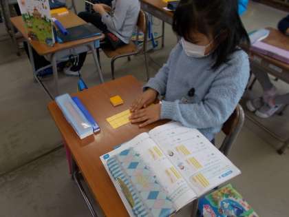 今日は、算数ブロックや位取り板を使い、数の仕組みについて理解を深めました。