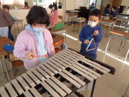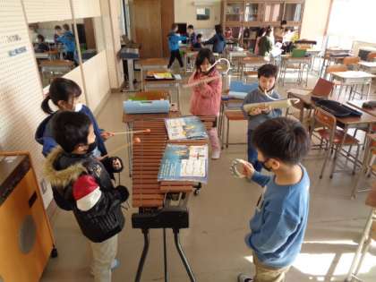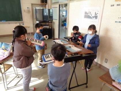 色団ごとに練習し、最後に聴き合いました。「最後のところがいいね!」等、互いのよさを見付けることができました。
