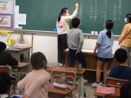 5年生からの呼びかけに応えて、学級会が始まりました。司会グループが黒板を上手に生かして話合いを進めています。