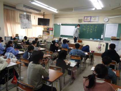 担任の先生との楽しいやり取りの中で、漢字の復習が行われていました。