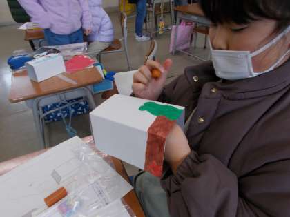 教師が作った見本を見せると、子供たちは興味津々。「やってみたい!」「早くやりたい!」と次々にアイディアを考え始めました。