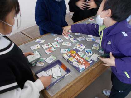 けん玉、こま、カルタ等、昔からある遊びをしました。