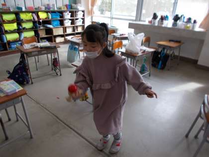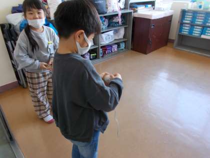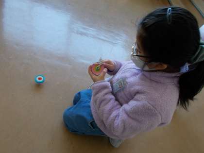 こま回しでは、ひもの巻き方を教え合ったり、カルタでは、順番に読み手になったりと、みんなで仲良く遊んだ子供たち。あっという間に時間になって、「ええ、もう時間!?」「休み時間にもやりたい!」と言っていました。