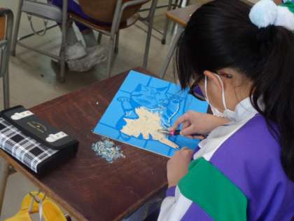 いよいよ全員が彫りに移りました。どの作品も大きく描き、白黒のコントラストが生かされています。