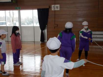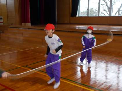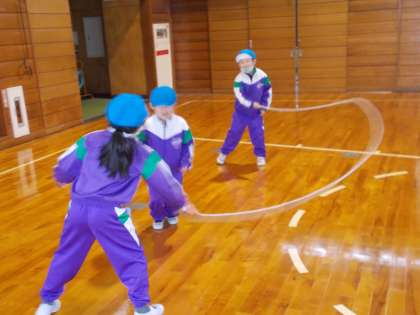 音楽科で学習した「おおなみ こなみ」をしたり、8の字跳びに挑戦したり、心も体も弾ませて沢山跳びました。