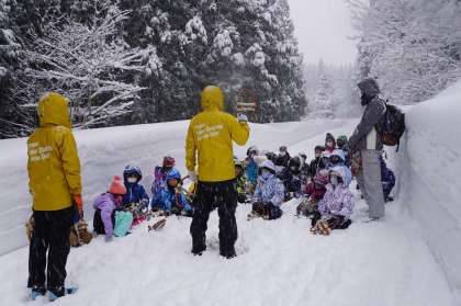 かたや4年生はかんじきを履いてハイキングの準備です。