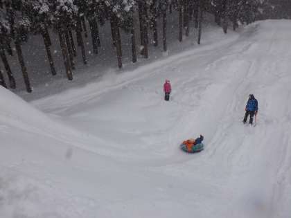 所員の方のデモンストレーションを見てからおそるそそる滑り始めました。