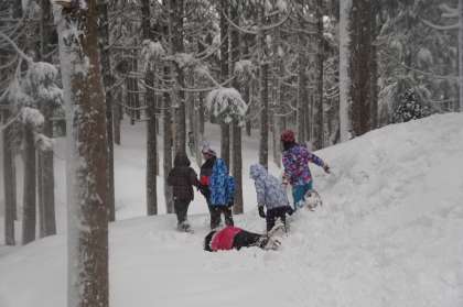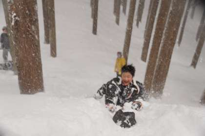 歩き始めると、かんじきの仕組みがすぐに理解できたようです。