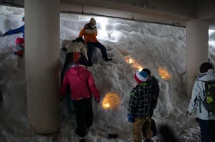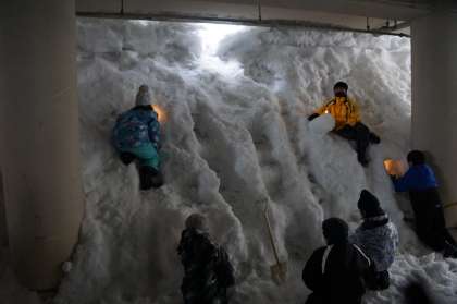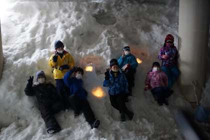 雪のシェードが完成し、キャンドルに点灯するとご覧のように幻想的になりました。