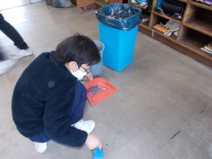 学年掃除の様子です。縦割り班清掃の時はもちろんですが、学年で掃除するときでも誰一人としてしゃべらず、黙々と取り組んでいます。6年生、真のリーダーです!